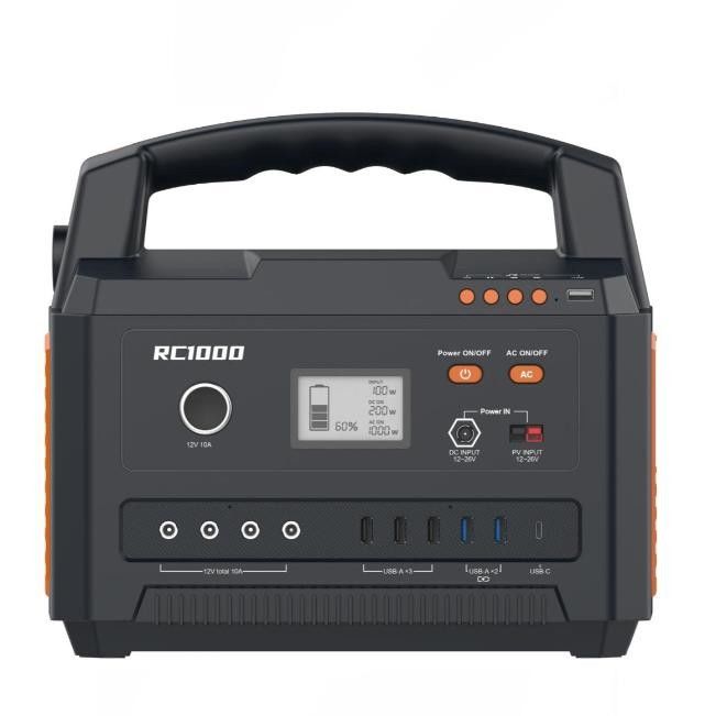 Dit product heeft een totaal AC-nominale uitgangsvermogen van 1000 W, met twee 110 V AC-uitgangen, drie USB-A-uitgangen die voldoen aan de QC3.0-standaard, één USB-C-uitgang die voldoet aan de PD60-standaard, twee DC5525-uitgangen,en een lichter voor sigarettenHet heeft een ingebouwde 5W LED-verlichting en SOS-alarmfunctie en ondersteunt Bluetooth versie 5.1.